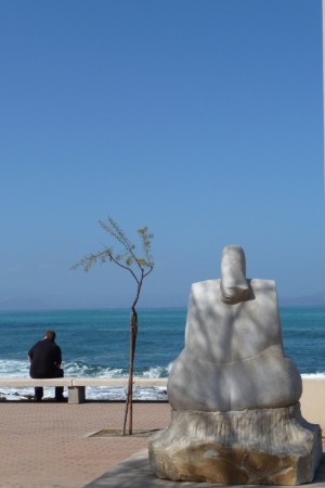 Zwischen Straße und Strand stehen die Tische eines Restaurants, welches die Möglichkeit einer Pause, etwas abseits des Trubels ermöglicht.