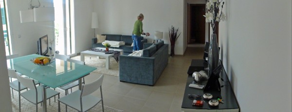 Die Wohnung hat 130m² klimatisierte Wohnfläche, der Poolbereich hat zusätzlich etwa 500m². Drei Schlafzimmer mit zwei separaten Bädern sowie wunderschöne eingebaute Teakholz-Kleiderschränke machen den Urlaub mit Freunden oder Familie zu einem Aufenthalt wie in einem Luxushotel. Die luxoriös ausgestattete Küche hat einen eigenen Frühstücksbereich. Die exklusive Ausstattung der Wohnung liegt weit über dem üblichen Standard. Das betrifft die Bodenbeläge, Kücheneinbauten, Badausstattung, Gartengestaltung und natürlich auch die Möblierung mit ausgewählten italienischen Designermöbeln.